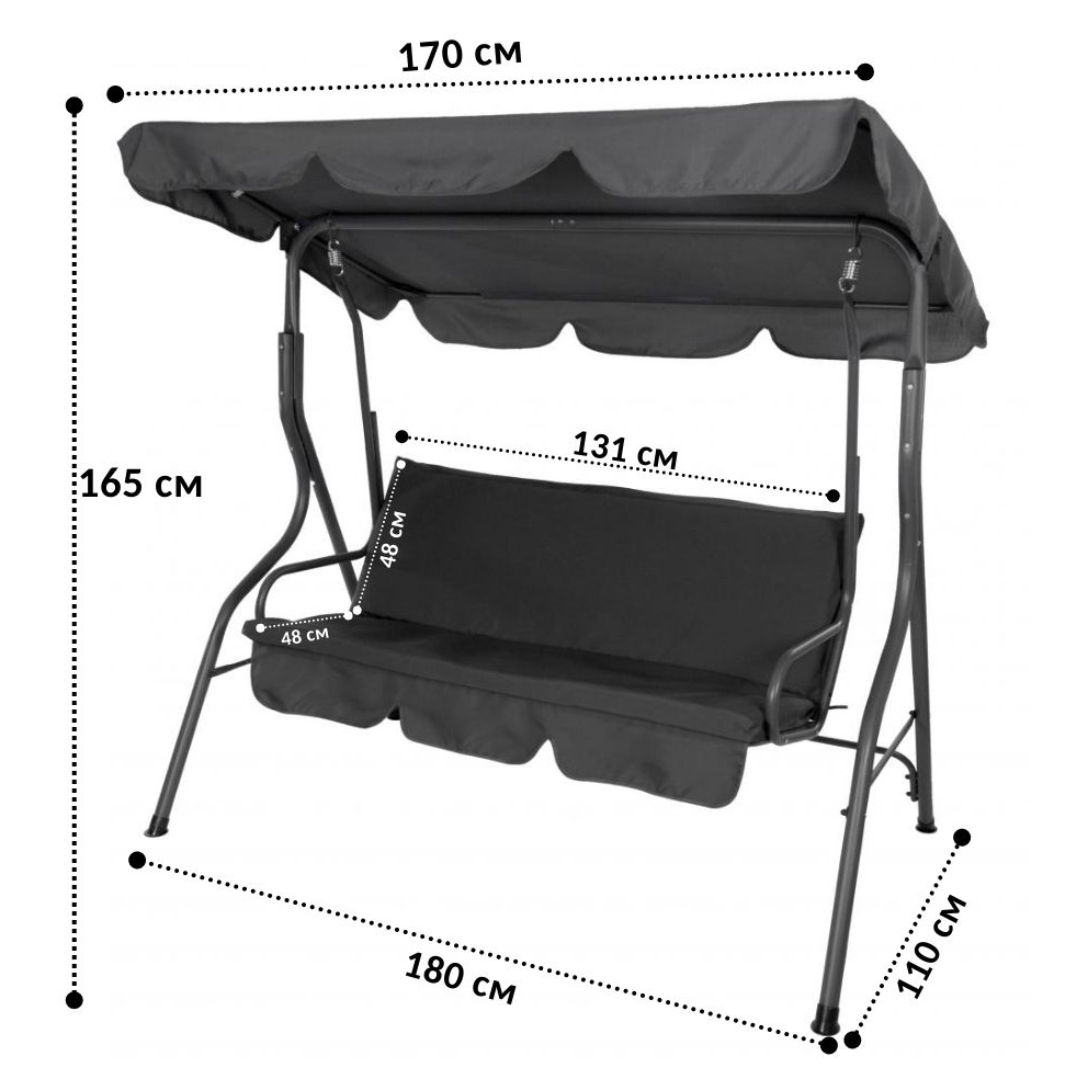 Відмінно підходить для всіх, хто бажає насолодитися відпочинком на свіжому повітрі, чи то в саду, на ділянці або відкритій терасі. Величезною перевагою гойдалки є легка збірка і розбирання при забезпеченні міцної, стійкої конструкції. М'яке сидіння з пінополіуретану забезпечить комфорт за будь-яких умов.