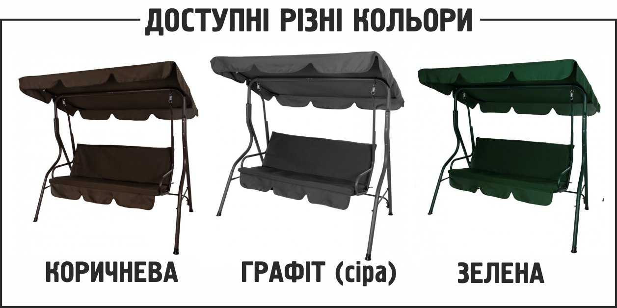 Каркас гойдалки виготовлено з міцної сталі з порошковим покриттям, завдяки якій, гойдалка міцно та надійно зафіксована, а також не піддається іржі та фарба не відслоюється. Додаткові пластикові накладки захищають від подряпин. Сидіння та навіс виготовлено зі щільного поліестеру, який легко витирається, не промокає, та не вигорає на сонці. Матеріал приємний на дотик!